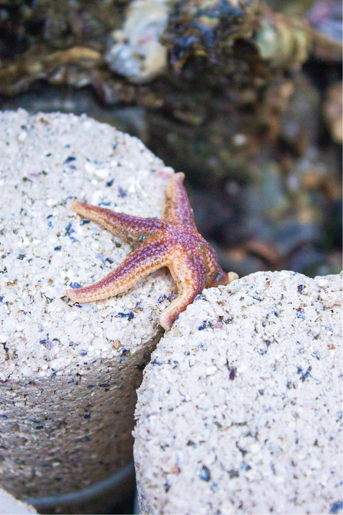 A sea star exploring Seacrete samples out in the field
